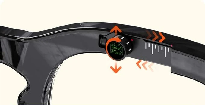 ディスプレイを搭載するAR/XR、AIグラスは、眼鏡ユーザーの場合、裸眼だと画面が見えないということも多いのですが、Halliday AIグラスはディスプレイを回転することで焦点距離を変えられます。私は中程度の近視(SPH:-4.0D)ですが、問題なく調整できました。-8.5D~+2.5Dの範囲で調整できるとのことです。また、水平・垂直にも移動でき、視野を微調整することが可能です。