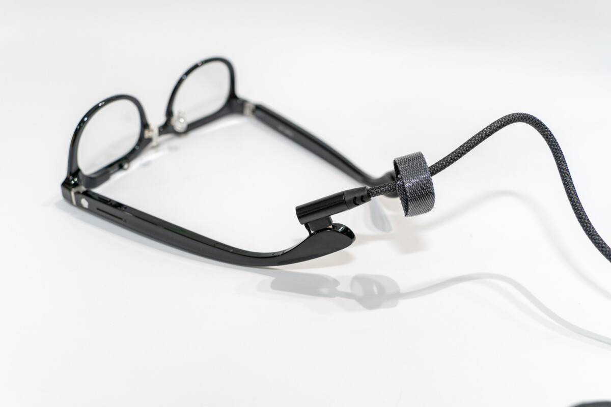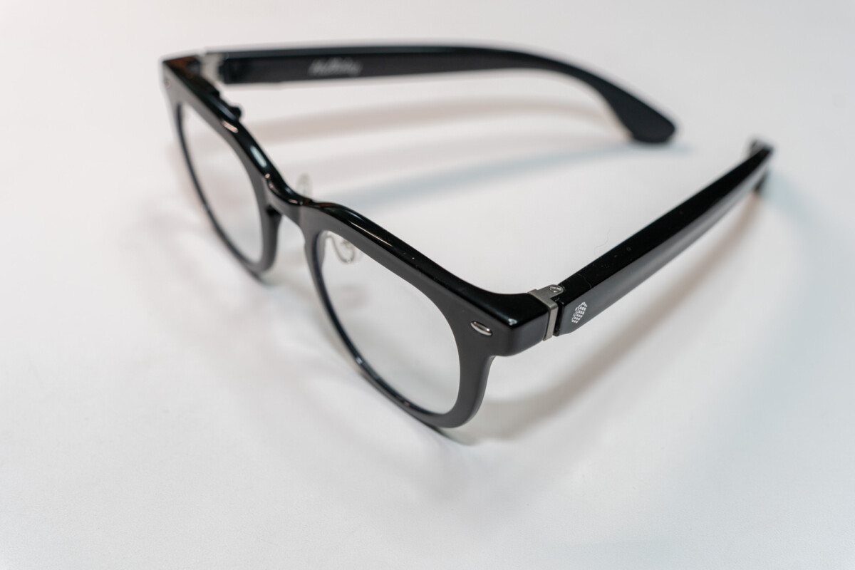 Halliday AIグラスの見た目はシンプルな眼鏡そのもの。ツルがやや太めではありますが、外から見てAIグラスだとはまずわかりません。
