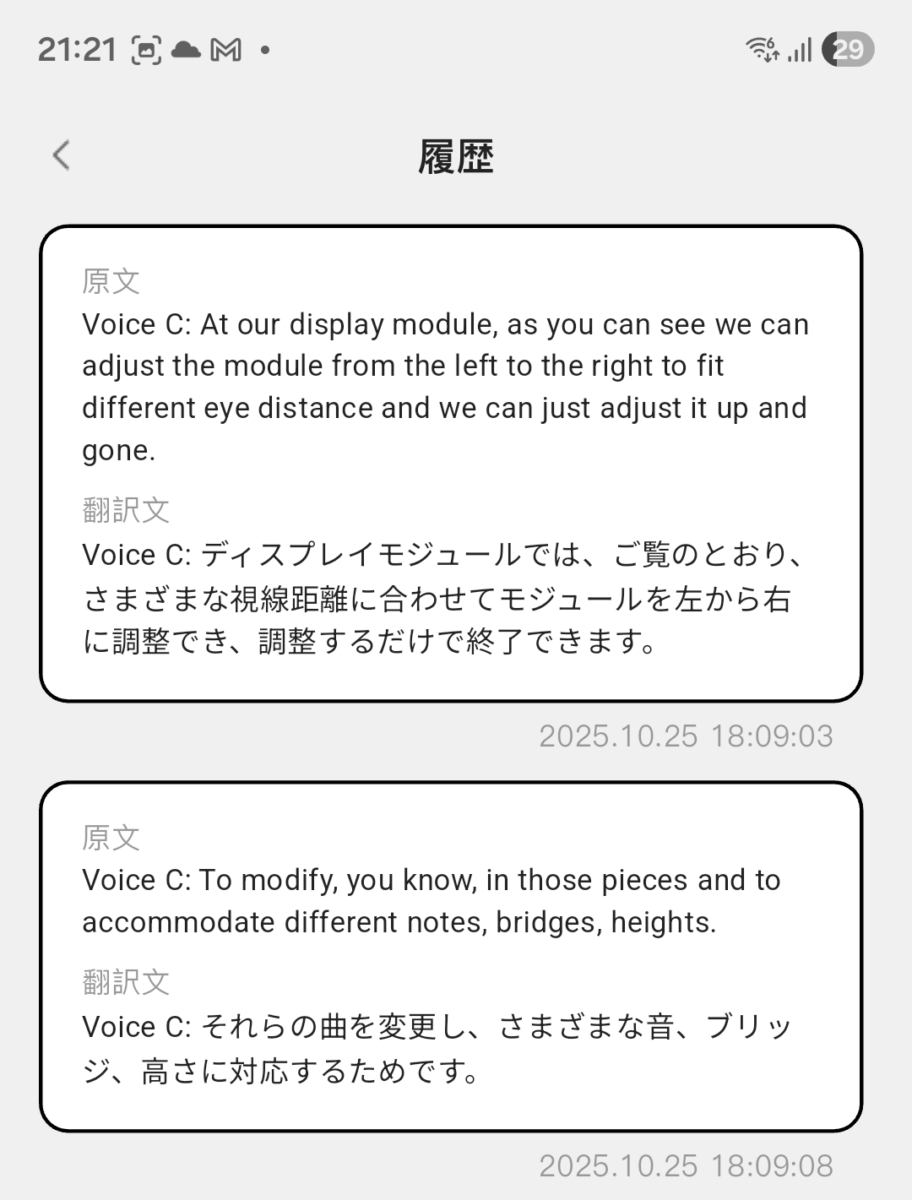 なお、認識した文章とその翻訳は、アプリ上からもリアルタイムに確認できます。