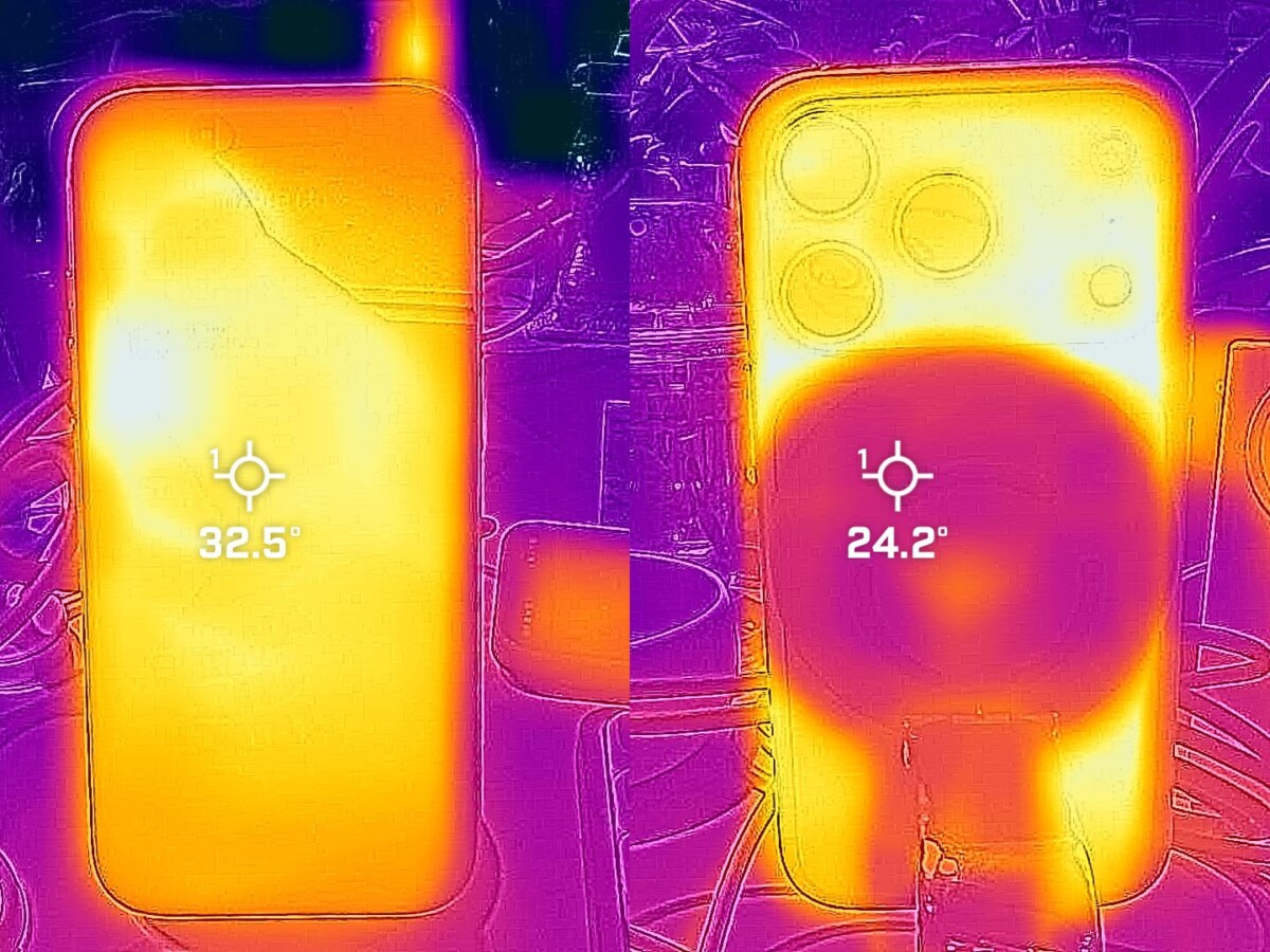 参考として、ファンを停止した状態で充電したところ、背面が38度まで発熱したので、ChillBoost冷却テクノロジーの効果は確かにあるようです。