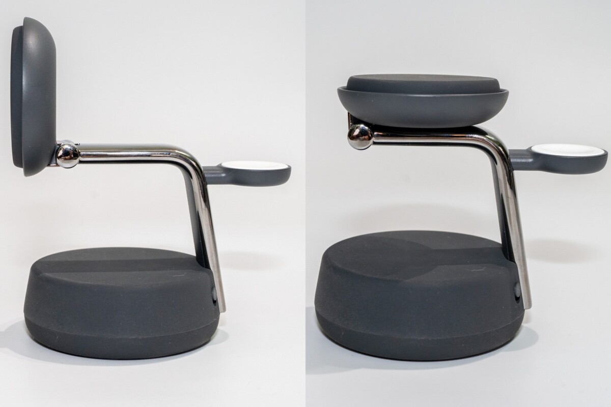 メインのiPhone充電部分(Qi2 25W充電部分)は可動式で角度を調整しながら使えます。