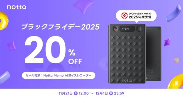 Notta Memoは、現在開催されているAmazonブラックフライデーで、20%オフの1万8800円となっています。