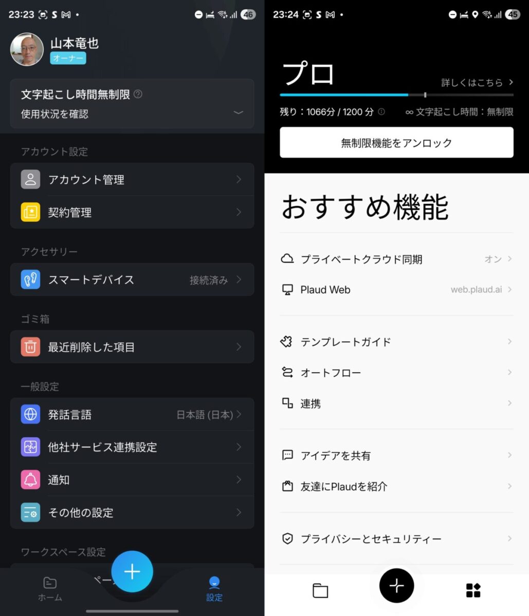 モバイルアプリそのものも、Plaudのほうがシンプルで使いやすいと感じます。Nottaは文字起こしサービスからスタートしているだけに機能が豊富過ぎてとっつきにくいと感じてしまいました。ただ、以前からNottaを利用している人なら問題はないのでしょう。また、わざわざ見比べなければ気にならない部分だとは思います。