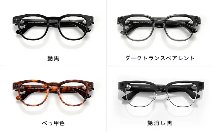 メガネのデザインは4種類。レンズはノーマルレンズ、カラーレンズ、調光レンズの3種類で、計12パターンの組み合わせから選べます。