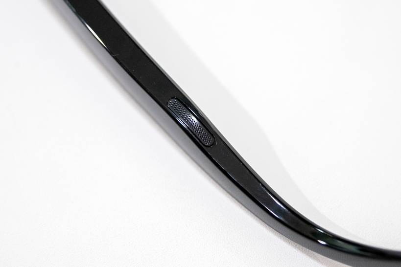 右側テンプルの上面には、カメラのキャプチャボタンを搭載。単押しで写真撮影、長押しで動画の撮影に対応します。