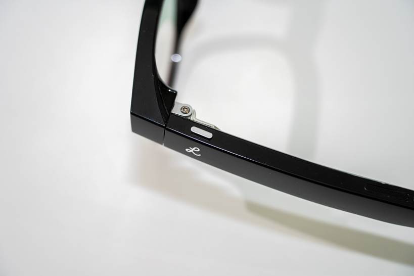 左側テンプルの上面には、AIボタンを搭載。このボタンを押すと独自のAIアシスタント「Memo」が起動し、音声で様々な指示を行えます。