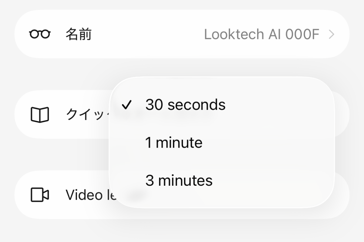 このほか、ボタンの長押しで動画の撮影も行えます。撮影時間は、アプリの設定で「30秒」「1分」「3分」を選択可能。再度ボタンを押すことで、撮影を終了することもできます。こちらも、Memoへの音声指示で撮影可能です。