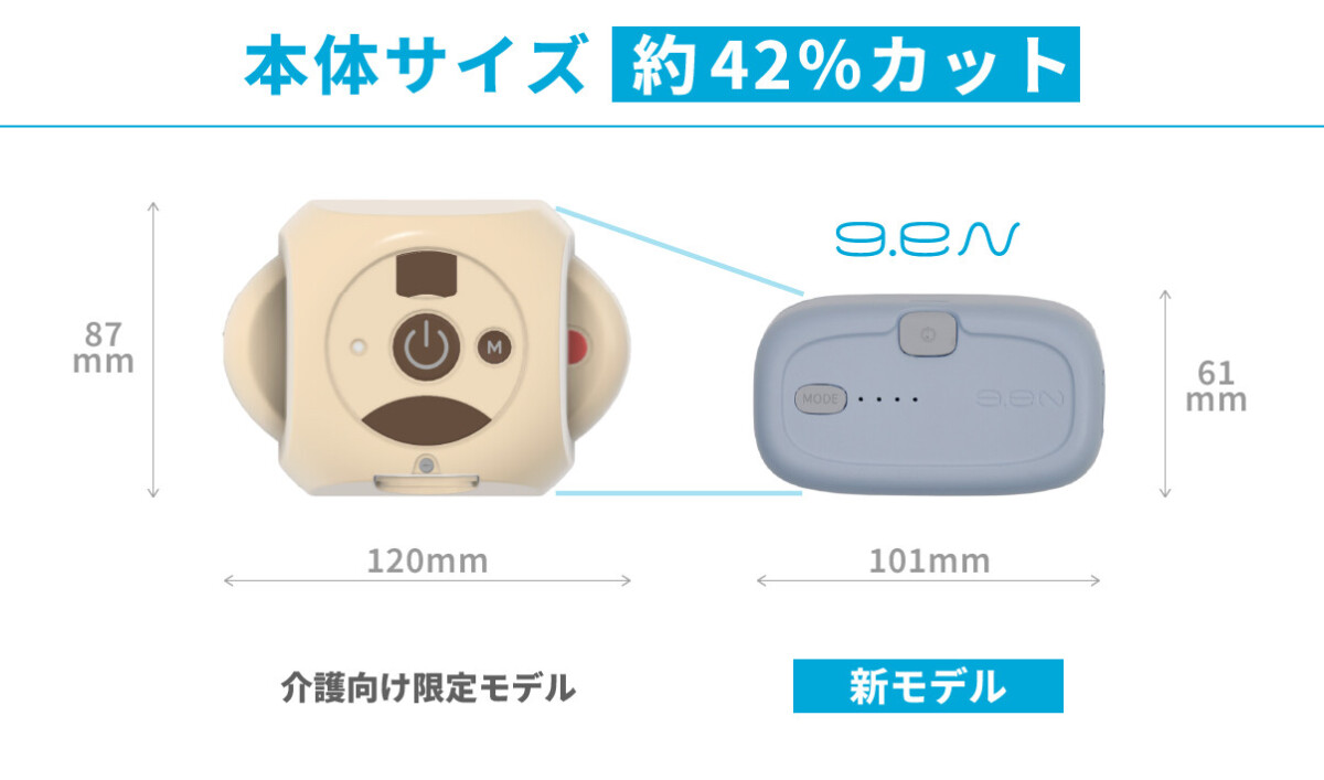 本体サイズを約42%カットし、一般的な洗面台の収納エリアに収まるサイズを実現しました。重さも320gから220gへと軽量化されています。