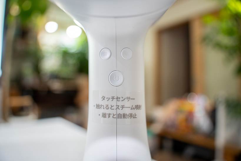 見た目は大きめのドライヤーのような雰囲気ですが、前面にあるスリット状の吹き出し口から高温スチームを噴出し、その下にある吸気口から排出したスチームを回収する仕組みです。
