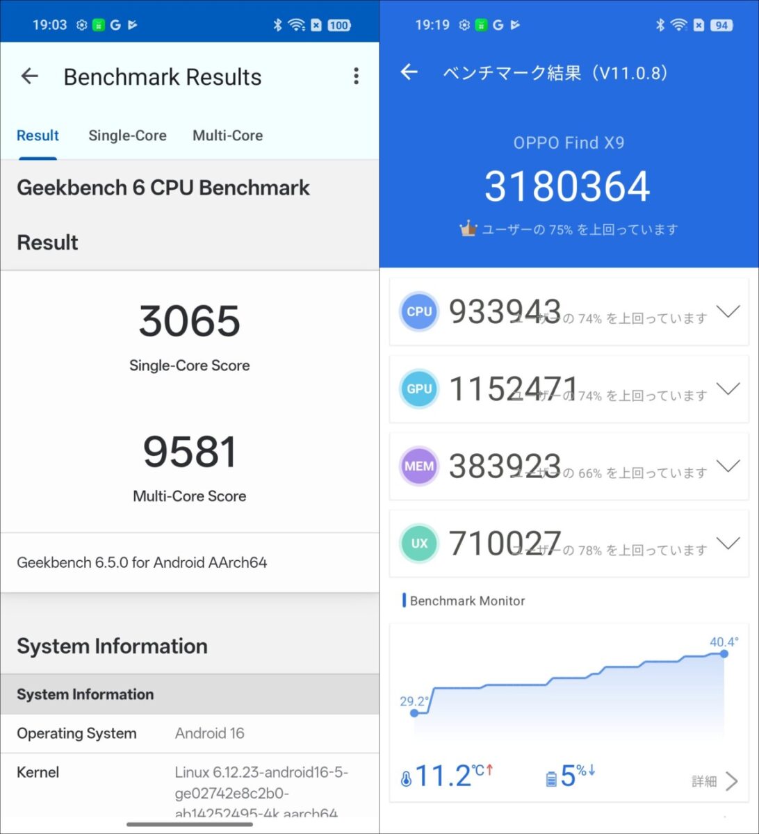 SoCにMediaTek Dimensity 9500を搭載するFind X9は、ハイエンド帯に分類されるスマートフォンです。ということで、その性能をベンチマークで測ってみました。