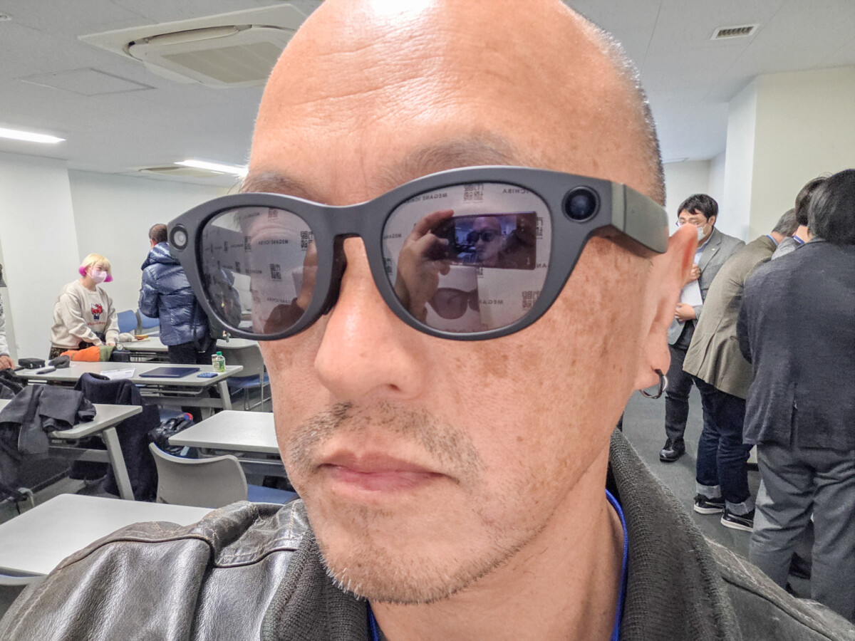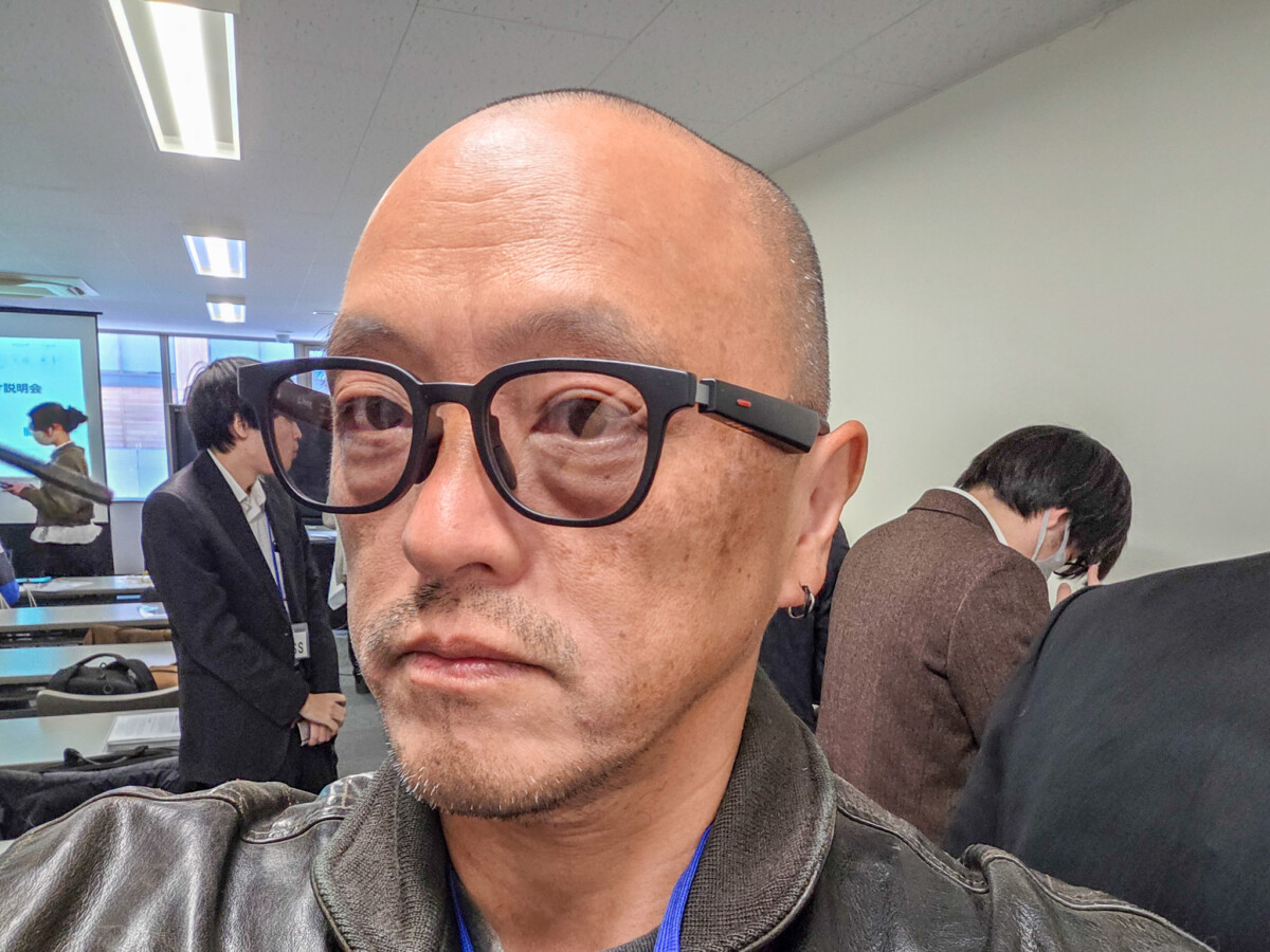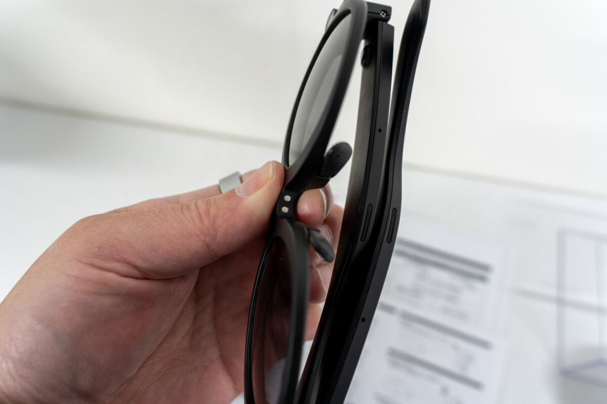 Linseは、向かって右側に12MPのカメラを搭載したスマートグラス。2眼のように見えますが、左側は撮影中に光るLEDです。プライバシーに配慮し、このLEDを塞いでいる場合には撮影ができなくなっています。