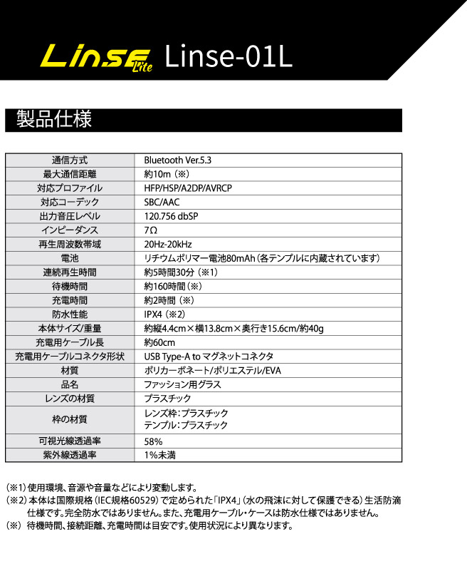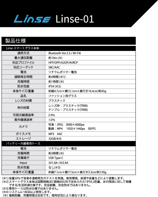 なお、Linseは「Luminous(明瞭で) Interactive(双方向な) Next-Gen(次世代の) Smart(スマート) Eyewear(アイウェア)」の頭文字をとったものとなっています。