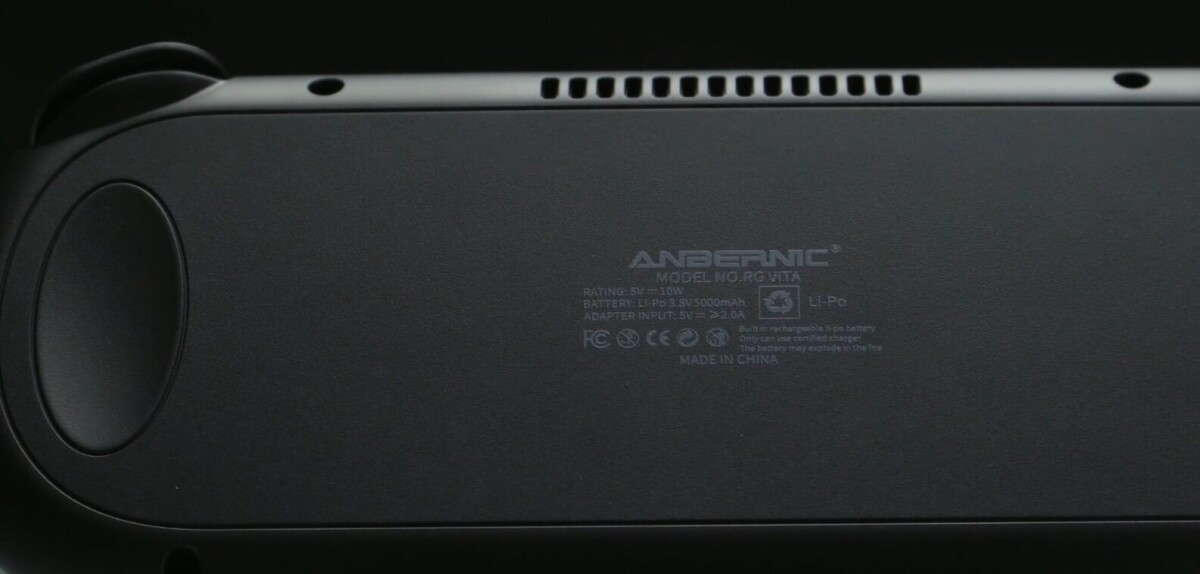 外観、そして名称からわかる通り、「PS VITA」のクローンモデル。Anbernicはレトロゲーム寄りということで、アスペクト比4:3のモデルが多いのですが、これはVITAと同じく16:9になっているようです。