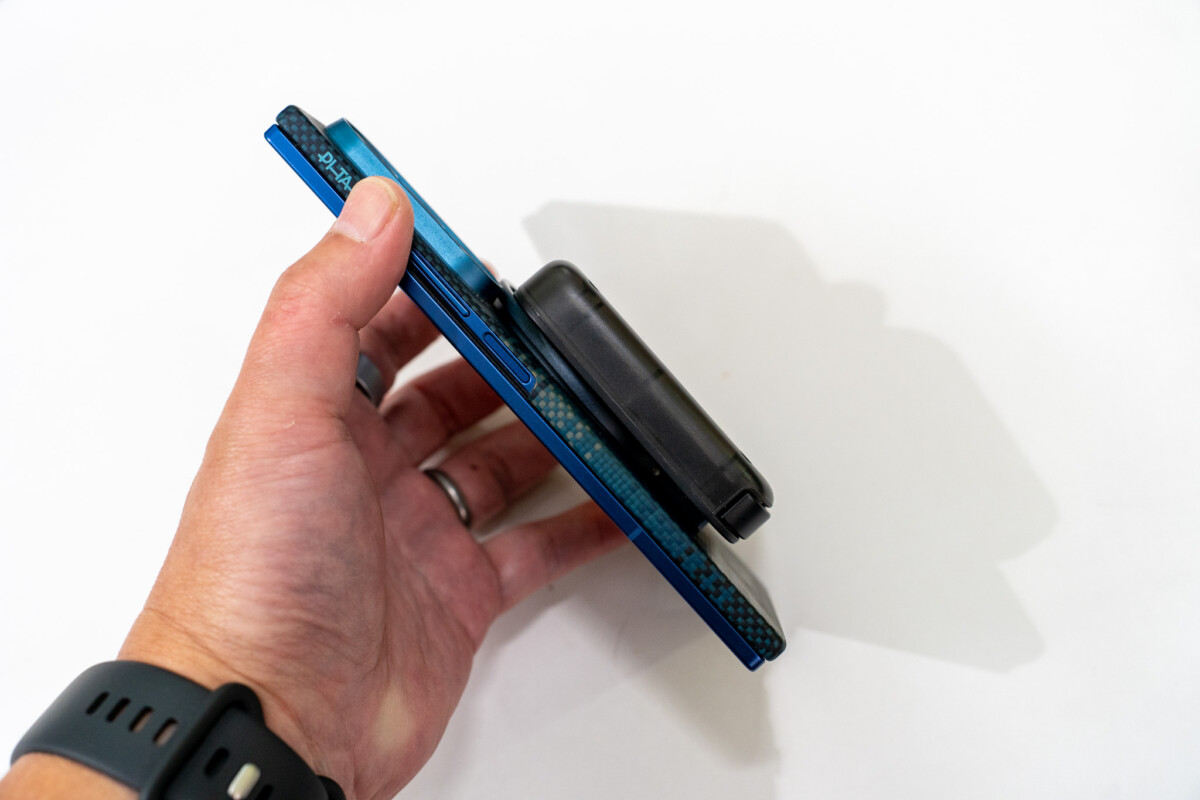 コントローラーとMagSafeリングはマグネットで接続します。逆向きに装着することで、スマホの背面にコンパクトに収めることも可能です。