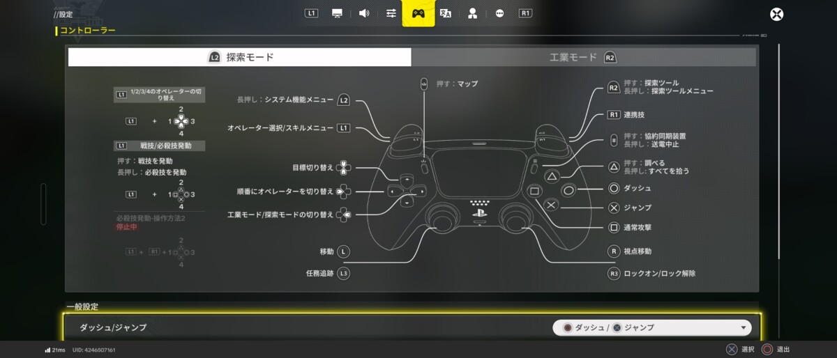 ▲PSモードで接続時のアークナイツ:エンドフィールドのコントローラー設定