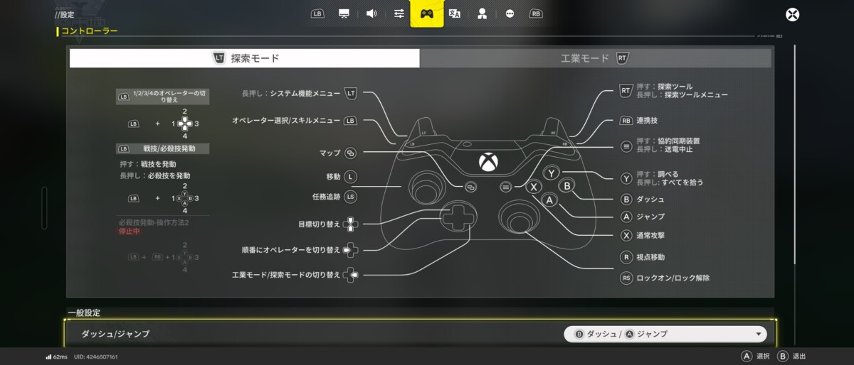 ▲HIDモード/NSモードで接続時のアークナイツ:エンドフィールドのコントローラー設定