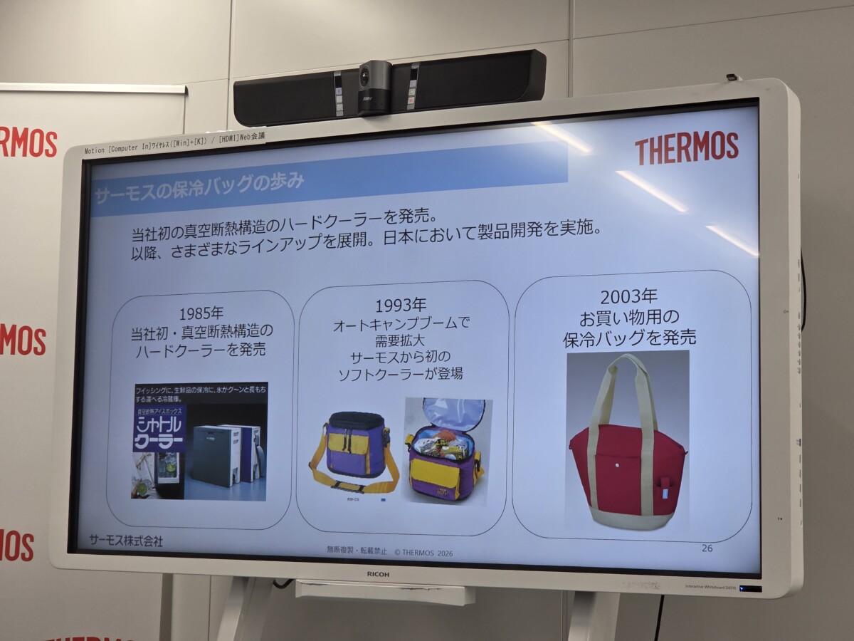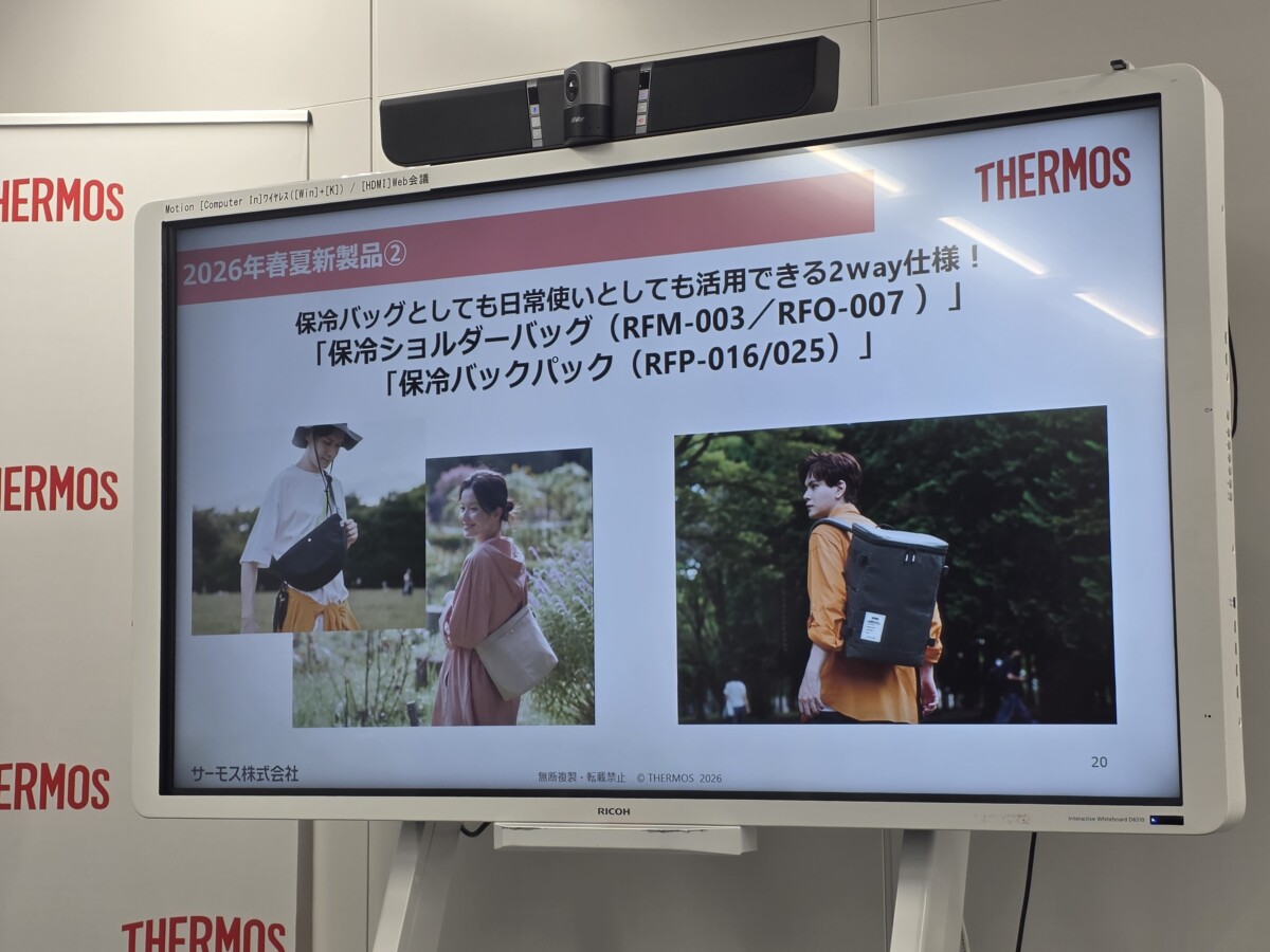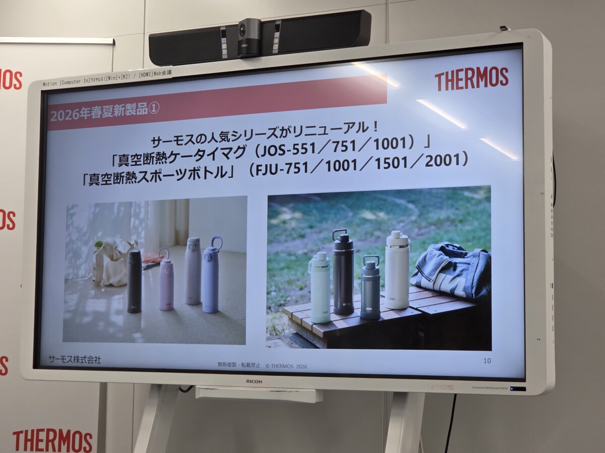 サーモス株式会社が都内で2026年春夏新製品のプレス発表会を開催し、2月21日から全9種19アイテムを発売すると発表しました。今回の新製品は、近年の記録的な猛暑を背景とした大容量ボトルの需要増加と、多様化する保冷バッグへのニーズに応えるラインナップとなっています。