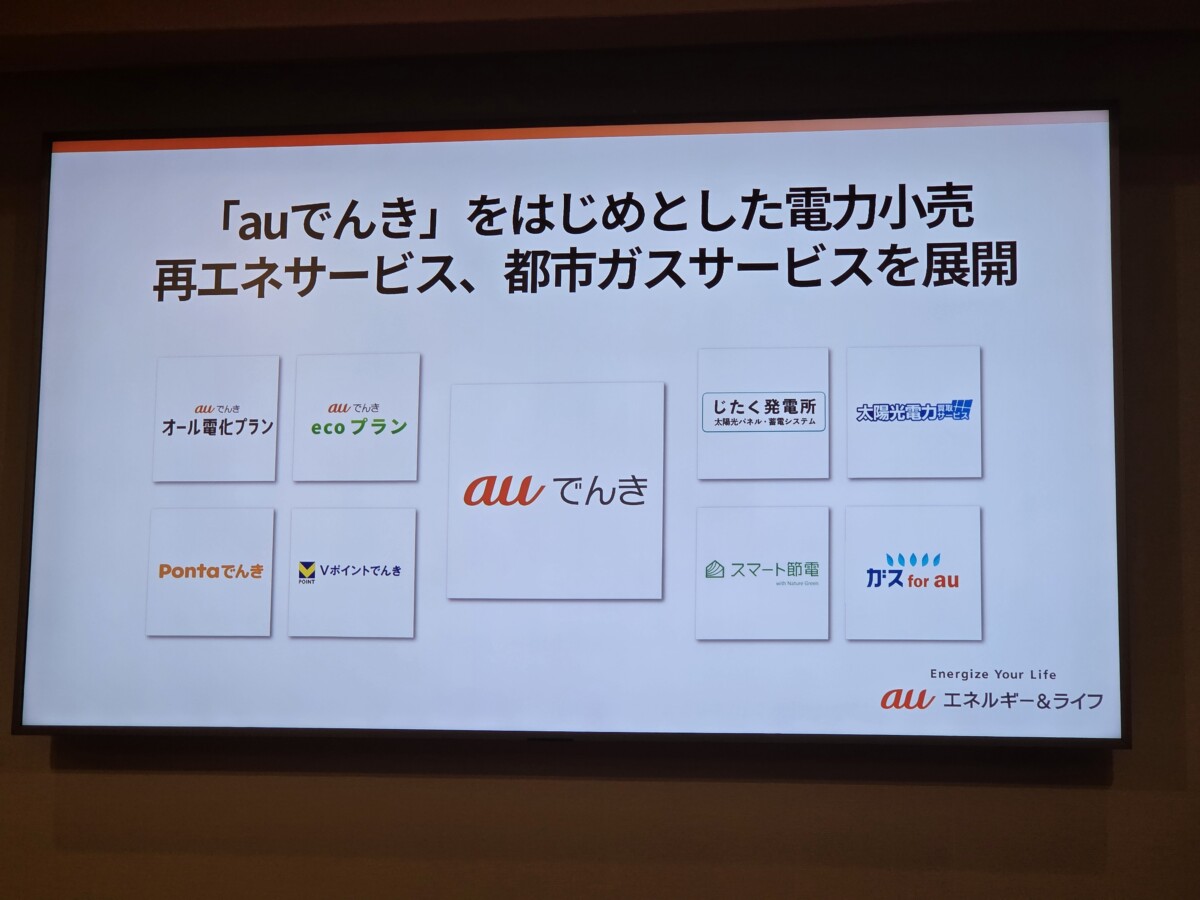 auでんきは2016年の電力完全自由化とともにKDDIとして提供を開始。2022年7月には「auエネルギー&ライフ株式会社」として分社化し、現在はauでんきを主軸に、オール電化向けプラン、PontaポイントやVポイントと連携したホワイトラベルサービス、都市ガスサービスの「ガス for au」、再生可能エネルギー「じたく発電所」など、複数のサービスを展開しています。