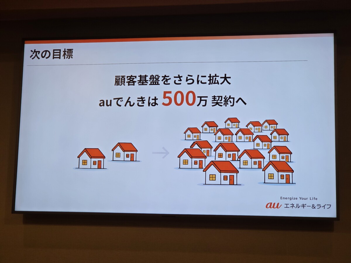 吉岡氏は今後の戦略として、顧客基盤を500万契約まで拡大し「大手電力会社を含むトップ集団入り」を目指すと明言しました。