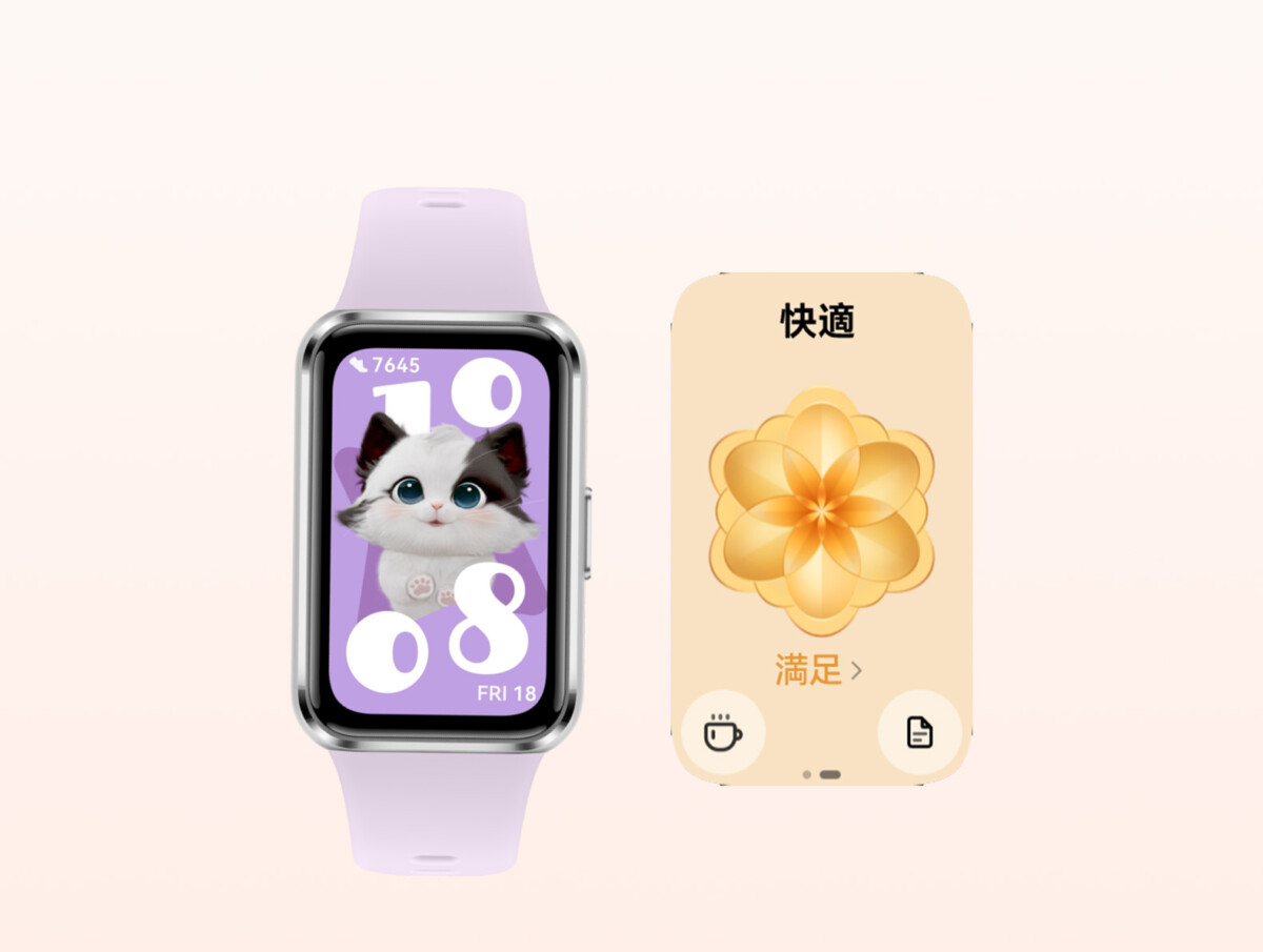 健康管理機能では、血中酸素(SpO₂)・心拍数・ストレス・生理周期トラッキングなどの機能に加えて、12段階の情緒モニタリングも利用可能になりました。WATCHシリーズなどで利用できるものと同じもので、情緒に応じて表情が変化する動物キャラクターの文字盤も利用できます。