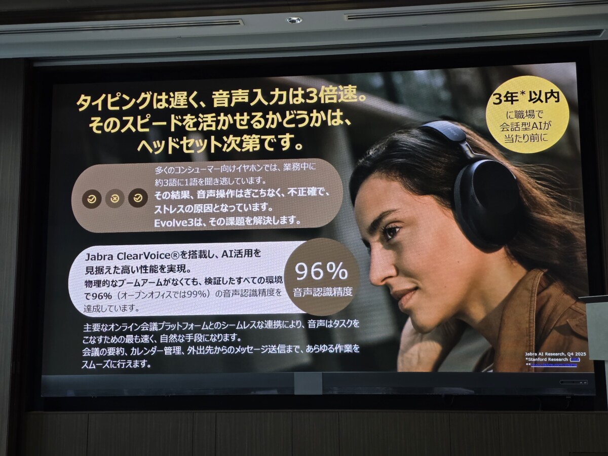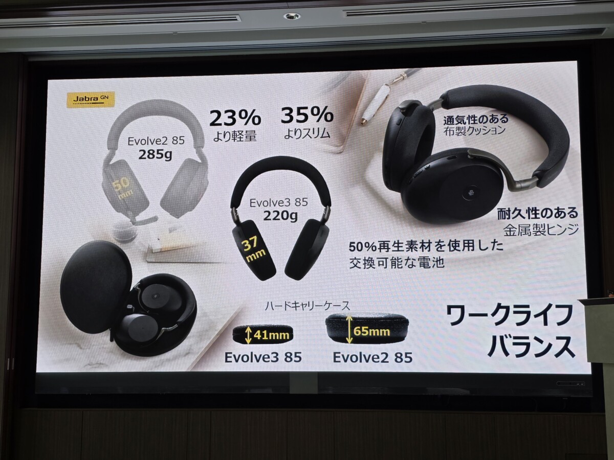 GNオーディオジャパンは2026年3月3日、東京都内でJabraブランドの最新ヘッドセット「Jabra Evolve3」シリーズの発表会を開催しました。ラインナップは「Jabra Evolve3 85」「Jabra Evolve3 75」の2モデルで、いずれも2026年3月1日より販売が開始されています。