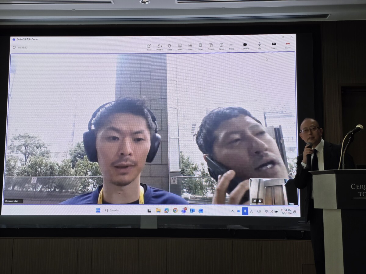 発表会では渋谷の国道246号線沿いという騒音環境でのデモが行われ、PC内蔵マイクや一般的なコンシューマー向けヘッドセットと切り替えながらEvolve3の音声分離性能が実演されました。