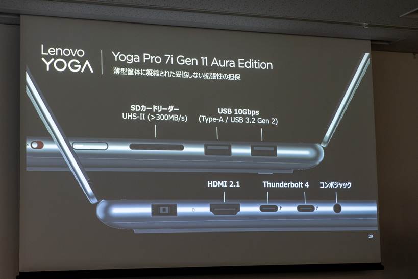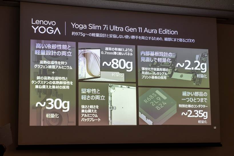 975g・75Whバッテリーを両立したフラッグシップ——Yoga Slim 7i Ultra Gen 11 Aura Edition