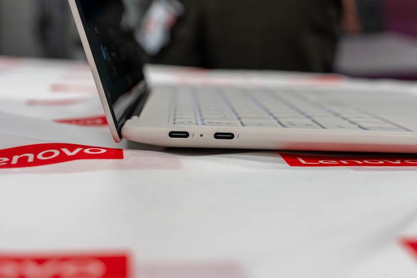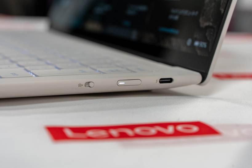 ディスプレイは14型 2.8K(2880×1800)PureSight OLED、90Hz、最大1,000nit。タッチ対応で、Dolby VisionやDisplayHDR True Black 600にも準拠しています。カメラは900万画素のMIPIカメラを搭載。インターフェースはUSB40Gbps(Type-C/USB4)×3構成です。今回の発表により、Yoga Slim 7iシリーズとして、Intel・AMD・Qualcommの3プラットフォームが揃うかたちになります。