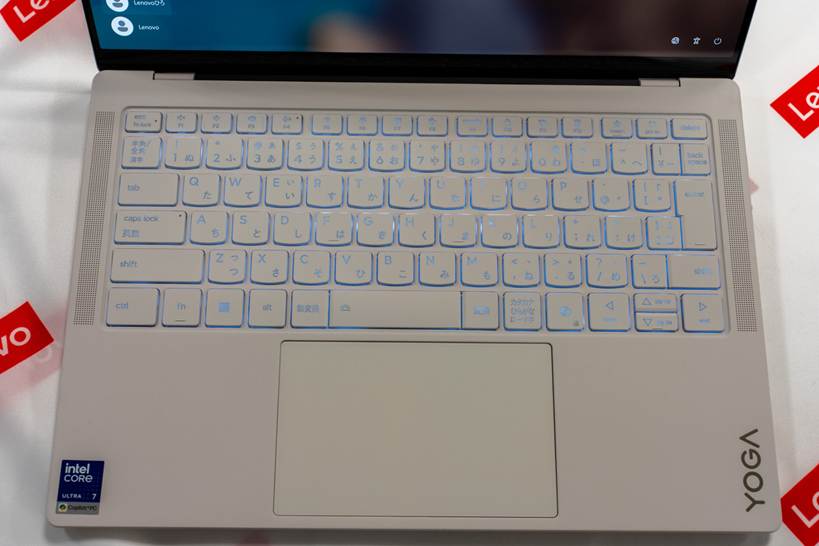 天板には防指紋・防皮脂コーティングの「Yoga Coat」を採用。カラーはシーシェル(白系)が用意されています。バッテリーはRapid Charge Boost対応で、15分の充電で約2時間の駆動が可能とのことです。