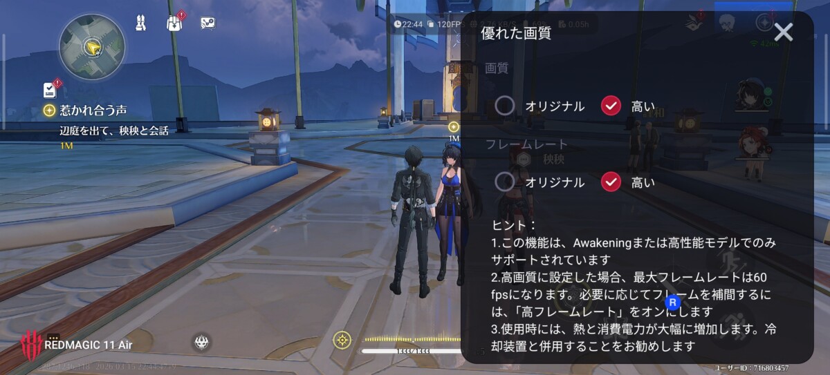 『鳴潮』では、鳴潮自身の設定を30FPSにしたままでも、120FPSで動作できました。