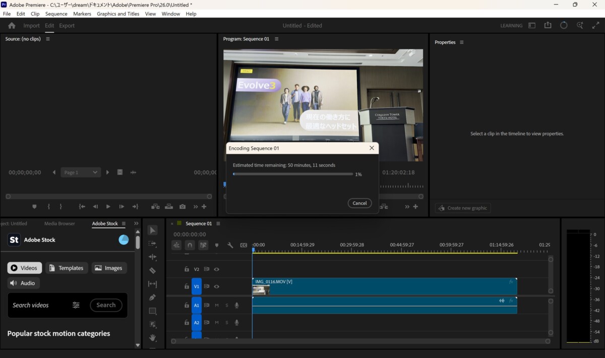 Adobe Premiere Proで1時間20分の4K@30fps動画を書き出したところ、かかった時間は約50分。かなり実用的な範囲ではないかと思います。
