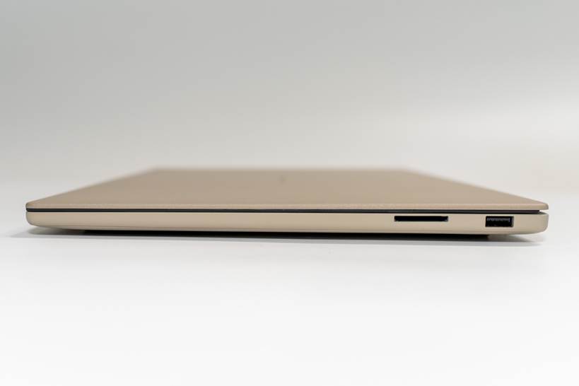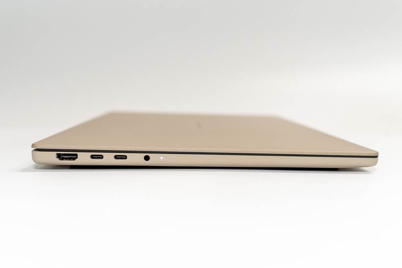 インターフェースは向かって左側面にHDMI×1、USB4(Type-C/Power Delivery対応)×2、ヘッドホン/ヘッドセットコンボジャック×1。右側面にUSB3.2(Type-A/Gen2)×1、そしてSDカードリーダー×1。
