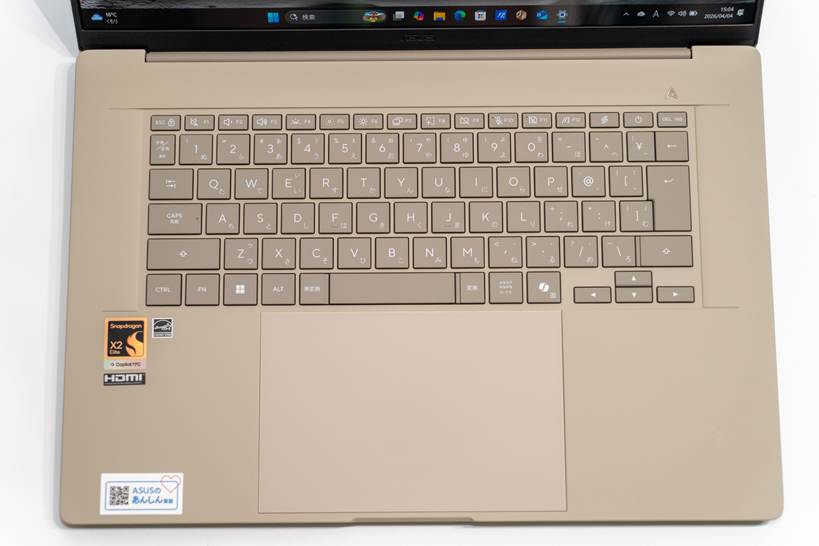 昨年レビューした14型の「ASUS Zenbook SORA」と同じシリーズですが、今回から16型モデルも新たに追加されました。プロセッサーもSnapdragon X2 Elite Extremeという新世代チップにアップグレードされています。