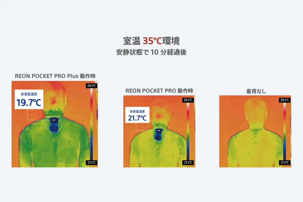 REON POCKET PRO Plusは、冷却時の快適性を追求するため、冷温部温度20℃をターゲットとする新たなアルゴリズムを採用。従来モデル「REON POCKET PRO(専用アプリ Ver. 2.1.1 以前)」と比較して、冷却性能が最大約20%向上し、冷温部温度は最大2℃低減しているとのこと。ソニーによれば、REON POCKETシリーズ史上最強の冷却を実現しているそうです。