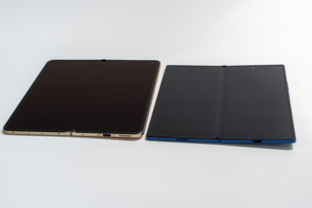 なにより、開いたときに文字通りにフラットになります。Galaxy Z Fold 7は、実は180°開きません。若干曲がった状態になってしまうのですが、Find N6は綺麗に開きます。