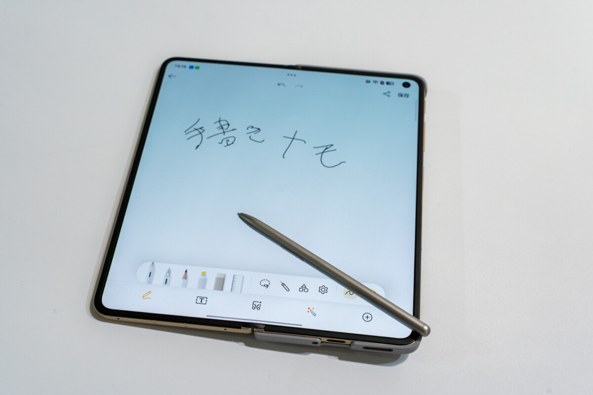 Find N6で個人的に気に入ったのが、別売オプションの「OPPO AI Pen Kit」(1万9800円)の存在です。筆圧感知は4096段階で、書き味は紙に近い自然なタッチ。メインスクリーンだけでなく、折りたたんだ状態のカバースクリーンでも同じように使えるのが便利で、ちょっとしたメモを取る程度ならいちいち本体を開く必要がありません。