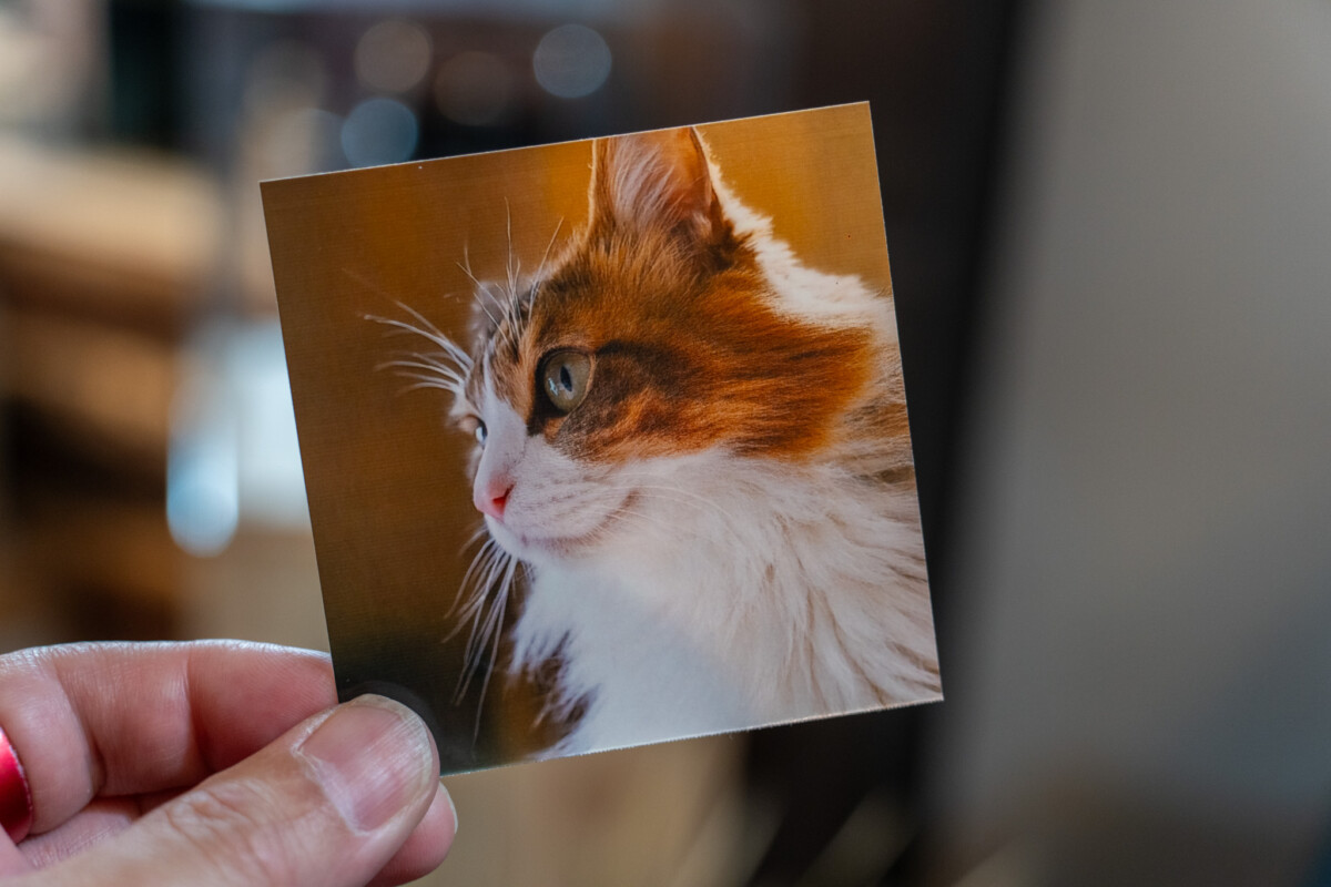 プリント方式は、イエロー・マゼンタ・シアンの3色に加えて保護層(プロテクト層)をローラーで巻くように重ねる仕組みで、プリント時間は1枚あたり1分程度です。最後のプロテクト層によって、プリントされた写真に保護膜がコーティングされる仕組みになっています。