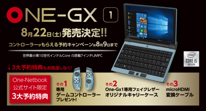One-Netbookの正規代理店テックワンが、ゲーミングUMPC「OneGX1」の発売日を8月22日と発表しました。これにあわせて、専用コントローラーが貰える予約キャンペーンを8月9日に終了するとのことです。